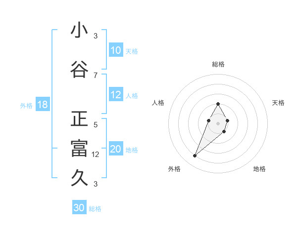 小谷 正富久さんを姓名の画数から五運を鑑定