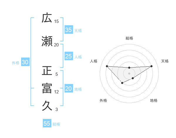 広瀬 正富久さんの総格は55画の1点!
