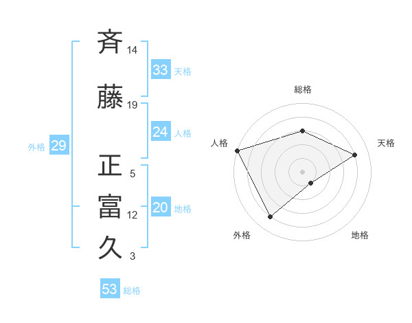 斉藤 正富久さんの総格は53画の3点!