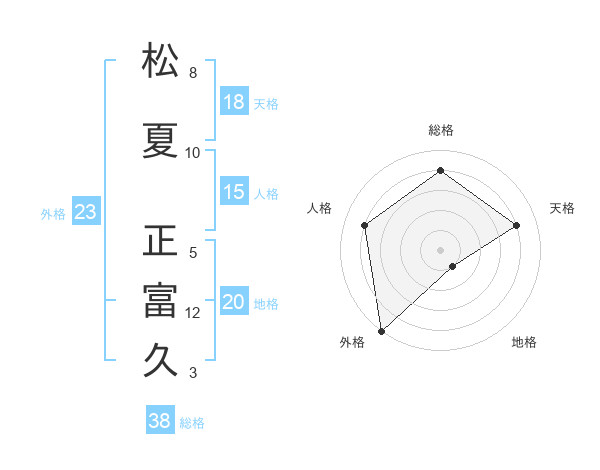 松夏 正富久さんを姓名の画数から五運を鑑定