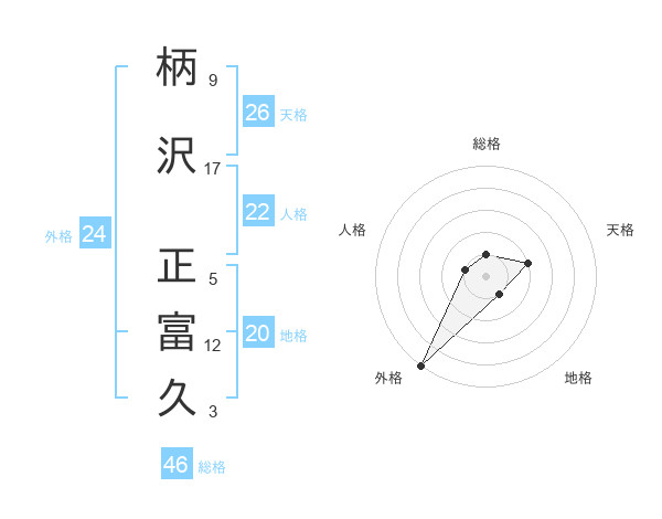 柄沢 正富久さんを姓名の画数から五運を鑑定