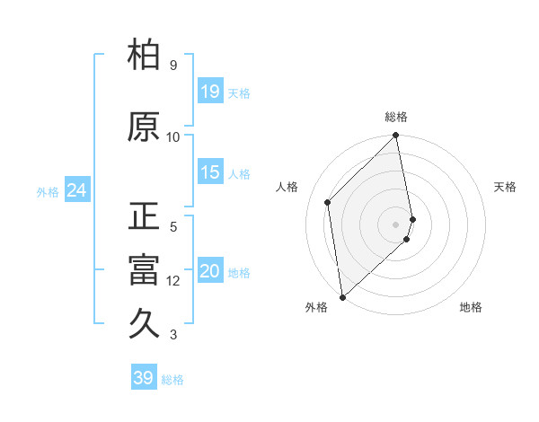 柏原 正富久さんの外格は24画の5点!