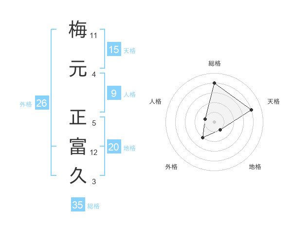 梅元 正富久さんを姓名の画数から五運を鑑定
