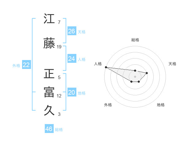 江藤 正富久さんを姓名の画数から五運を鑑定