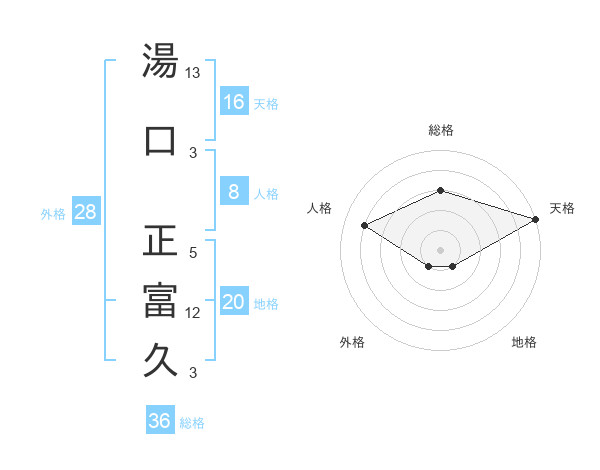 湯口 正富久さんを姓名の画数から五運を鑑定