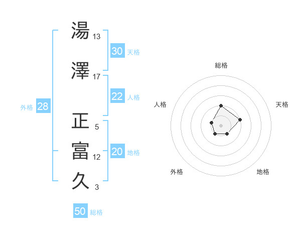湯澤 正富久さんを姓名の画数から五運を鑑定