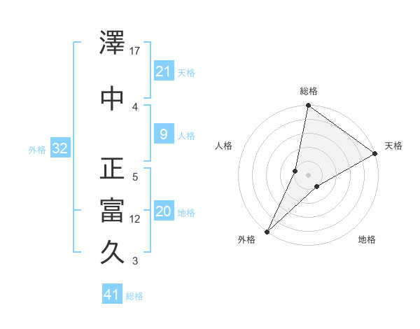 澤中 正富久さんを姓名の画数から五運を鑑定