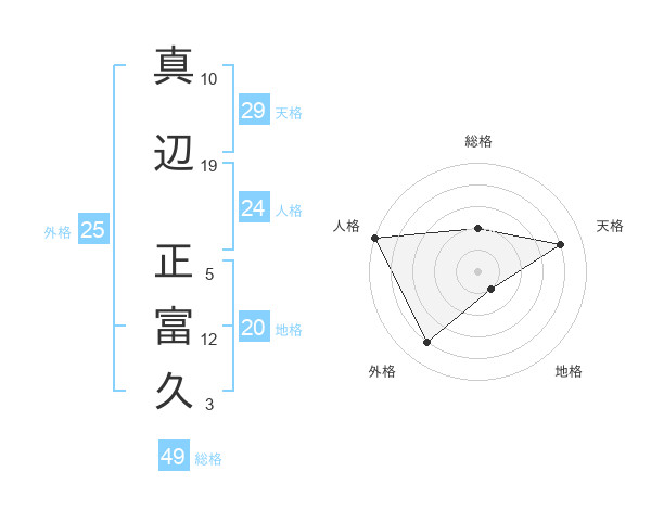 真辺 正富久さんの天格は29画の4点!