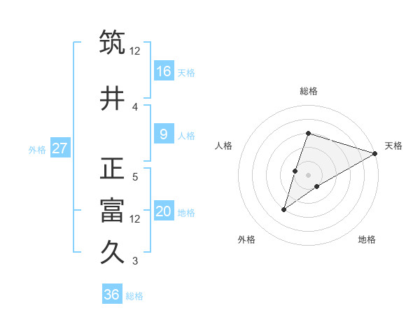 筑井 正富久さんの天格は16画の5点!