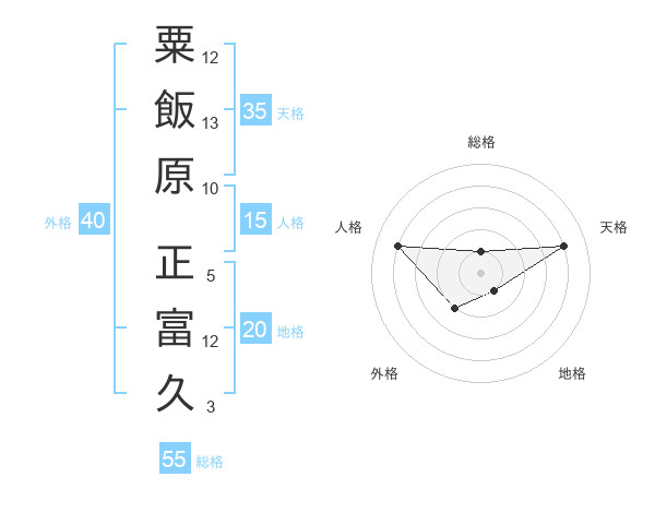 粟飯原 正富久さんの天格は35画の4点!