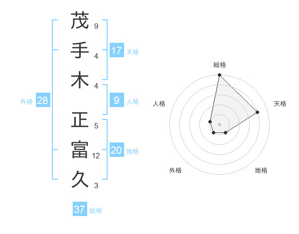 茂手木 正富久さんの総格は37画の5点!