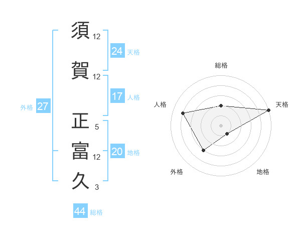 須賀 正富久さんの総格は44画の2点