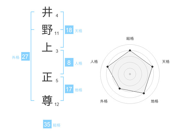 井野上 正尊さんの総格は35画の4点!