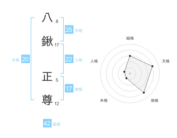 八鍬 正尊さんの地格は17画の4点!