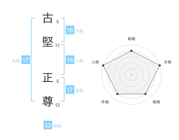 古堅 正尊さんを姓名の画数から五運を鑑定