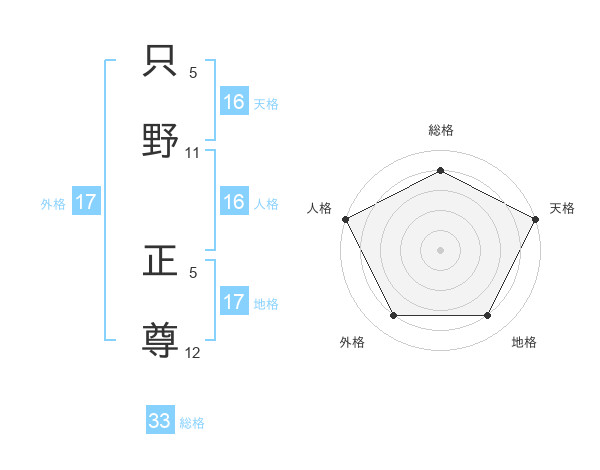只野 正尊さんの天格は16画の5点!