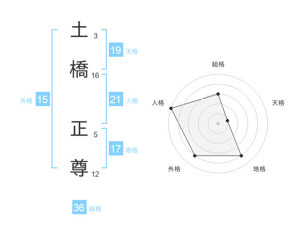 土橋 正尊さんを姓名の画数から五運を鑑定