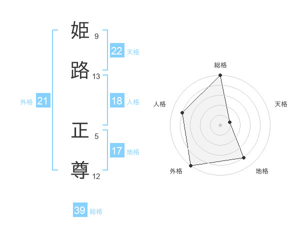 姫路 正尊さんの総格は39画の5点!