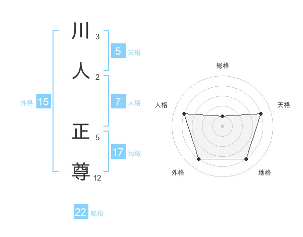 川人 正尊さんを姓名の画数から五運を鑑定