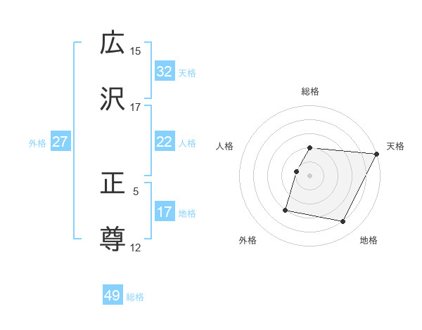 広沢 正尊さんの天格は32画の5点!