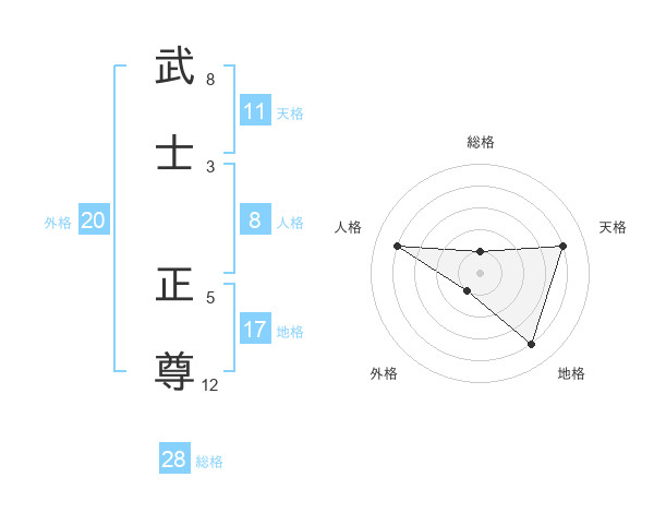 武士 正尊さんの総格は28画の1点!