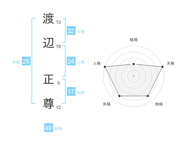 渡辺 正尊さんの天格は32画の5点!