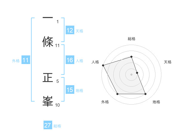 一條 正峯さんの外格は11画の4点!