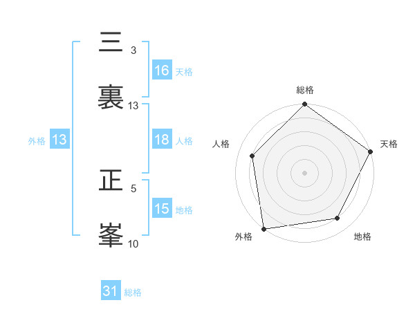 三裏 正峯さんの外格は13画の5点!