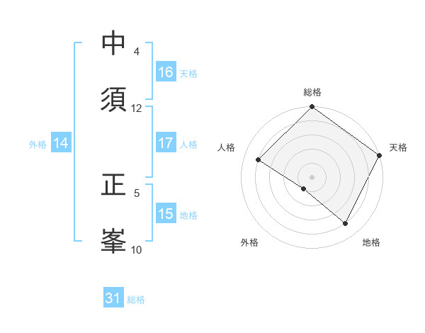 中須 正峯さんの総格は31画の5点!