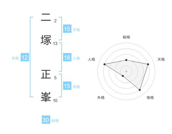 二塚 正峯さんの総格は30画の2点!
