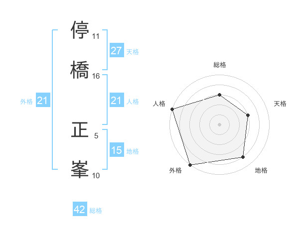 停橋 正峯さんを姓名の画数から五運を鑑定