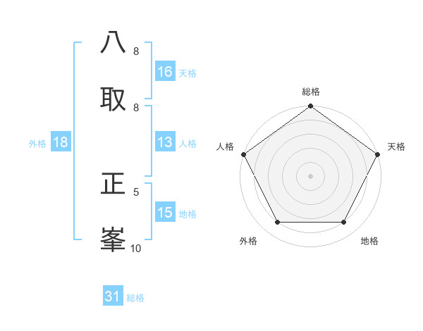 八取 正峯さんの総格は31画の5点!