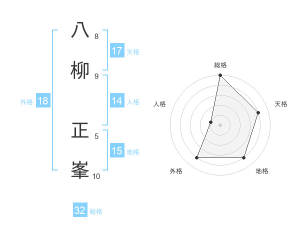 八柳 正峯さんを姓名の画数から五運を鑑定