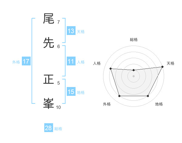 尾先 正峯さんの天格は13画の5点!