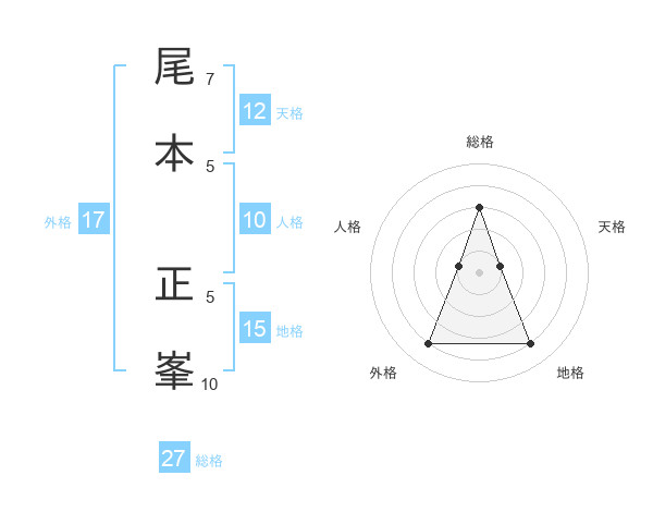 尾本 正峯さんを姓名の画数から五運を鑑定