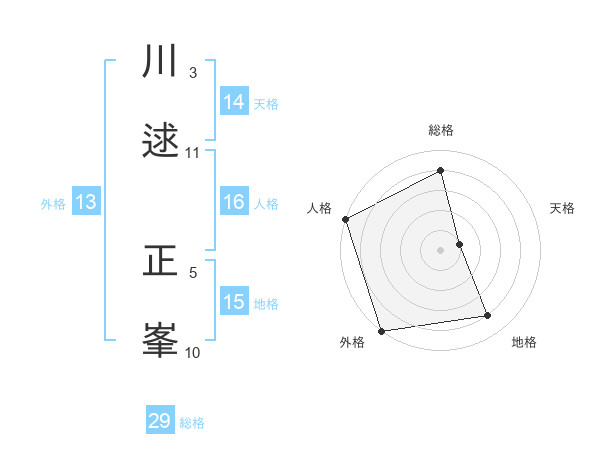 川逑 正峯さんの総格は29画の4点!