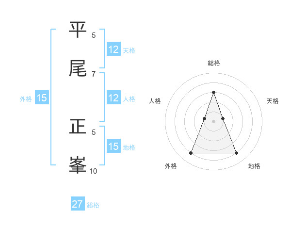 平尾 正峯さんの総格は27画の3点!