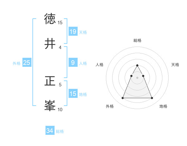 徳井 正峯さんの総格は34画の2点!