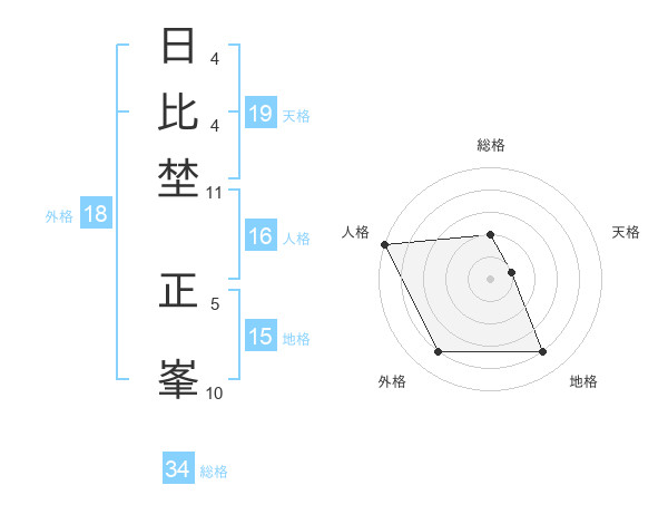 日比埜 正峯さんを姓名の画数から五運を鑑定