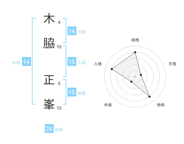 木脇 正峯さんを姓名の画数から五運を鑑定