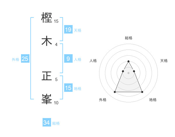 樫木 正峯さんの総格は34画の2点!