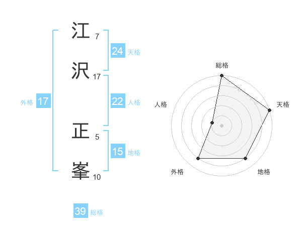 江沢 正峯さんの天格は24画の5点!