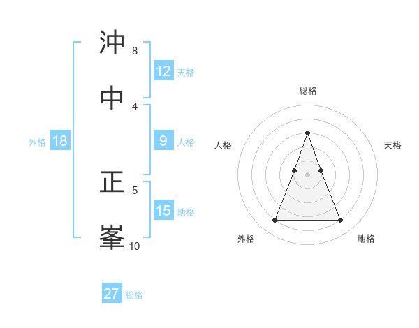 沖中 正峯さんの総格は27画の3点!