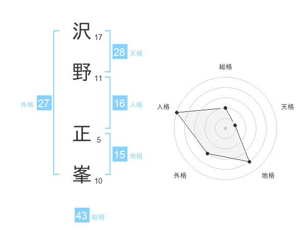 沢野 正峯さんを姓名の画数から五運を鑑定