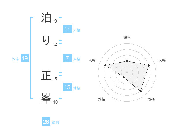 泊り 正峯さんを姓名の画数から五運を鑑定