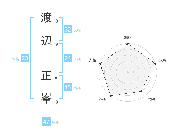 渡辺 正峯さんを姓名の画数から五運を鑑定