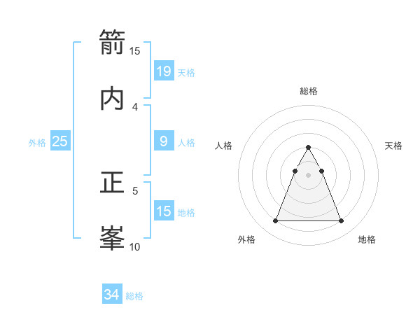 箭内 正峯さんを姓名の画数から五運を鑑定