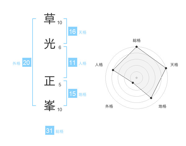 草光 正峯さんの総格は31画の5点!
