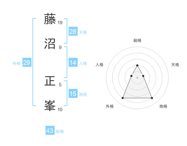 藤沼 正峯さんの総格は43画の2点!