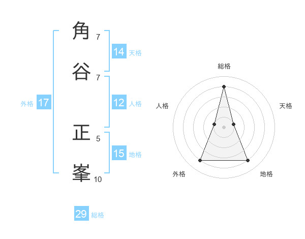 角谷 正峯さんを姓名の画数から五運を鑑定